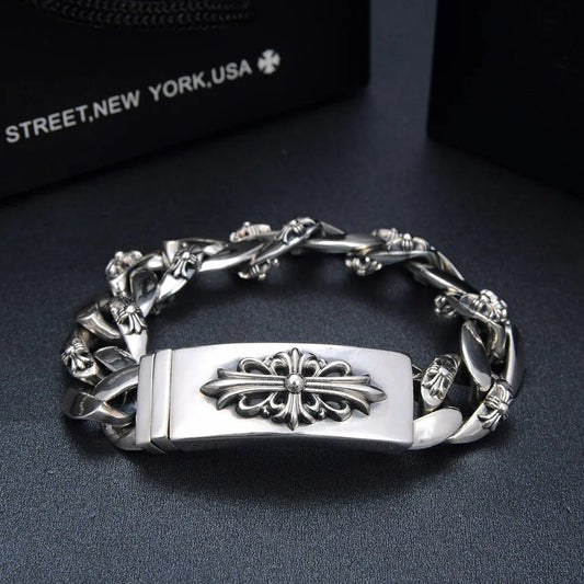 Chrome Heart Floral Cuban Link Bracelet Sterling Silver