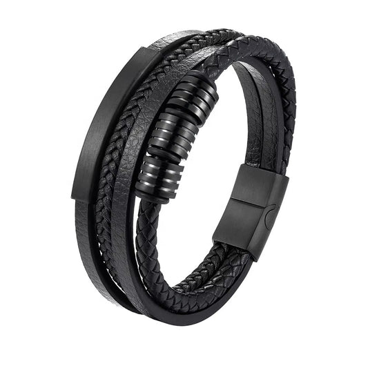 Men’s Multilayer Leather Bracelet with Magnetic Clasp