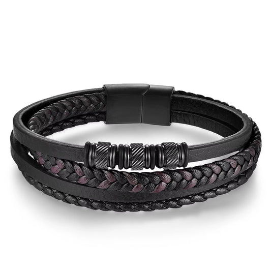 Men’s Multi Layer Leather Bracelet with Steel Clasp