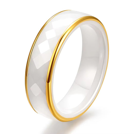 This 6mm luxury ceramic ring features a stunning black, white, and gold cross-section design, enhanced...