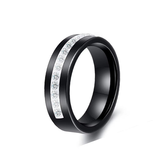 Women's CZ Ceramic Stainless Steel Wedding Ring