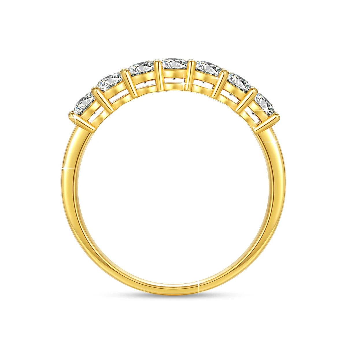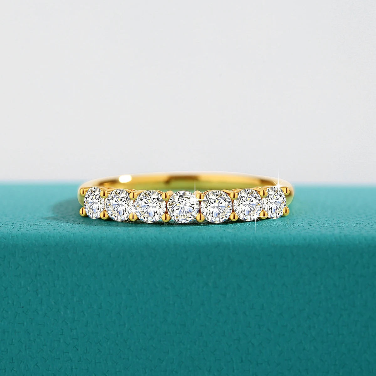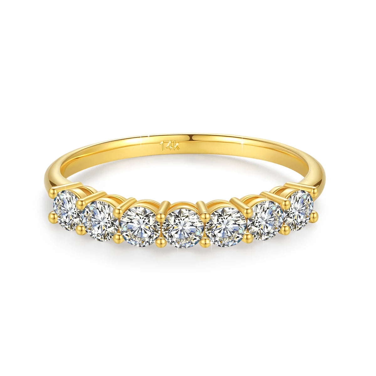 14K Gold Diamond Wedding Band – a sleek band featuring 7 round moissanite stones, each GRA certified with D–F color and VVS1 clarity. Crafted in solid 14K gold, this band radiates timeless elegance and symbolic brilliance.