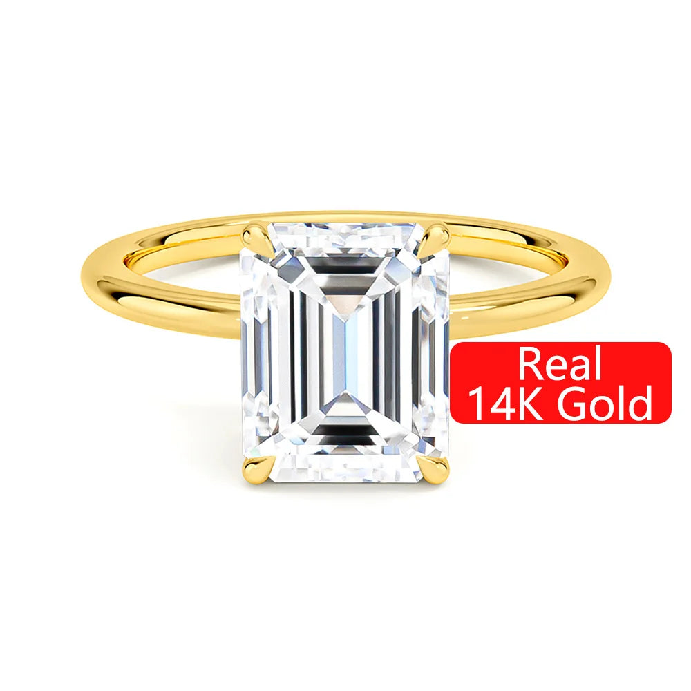 14K Gold Emerald Cut Moissanite Diamond Rings
