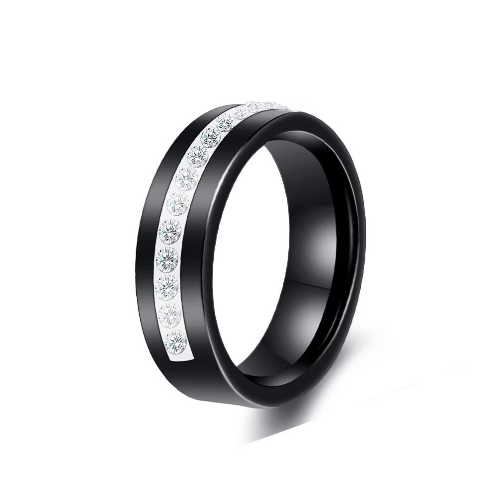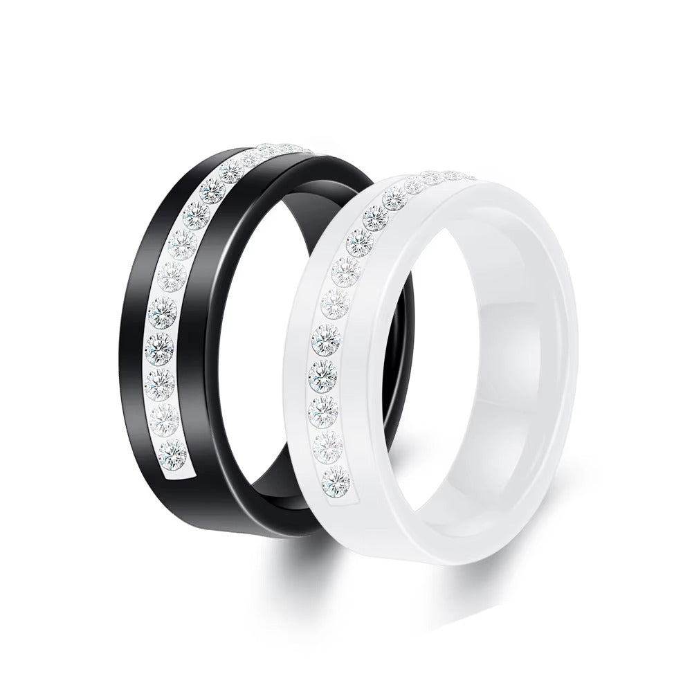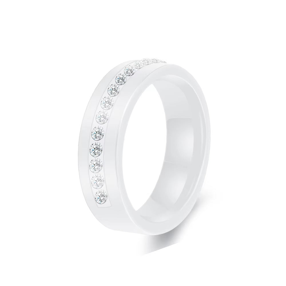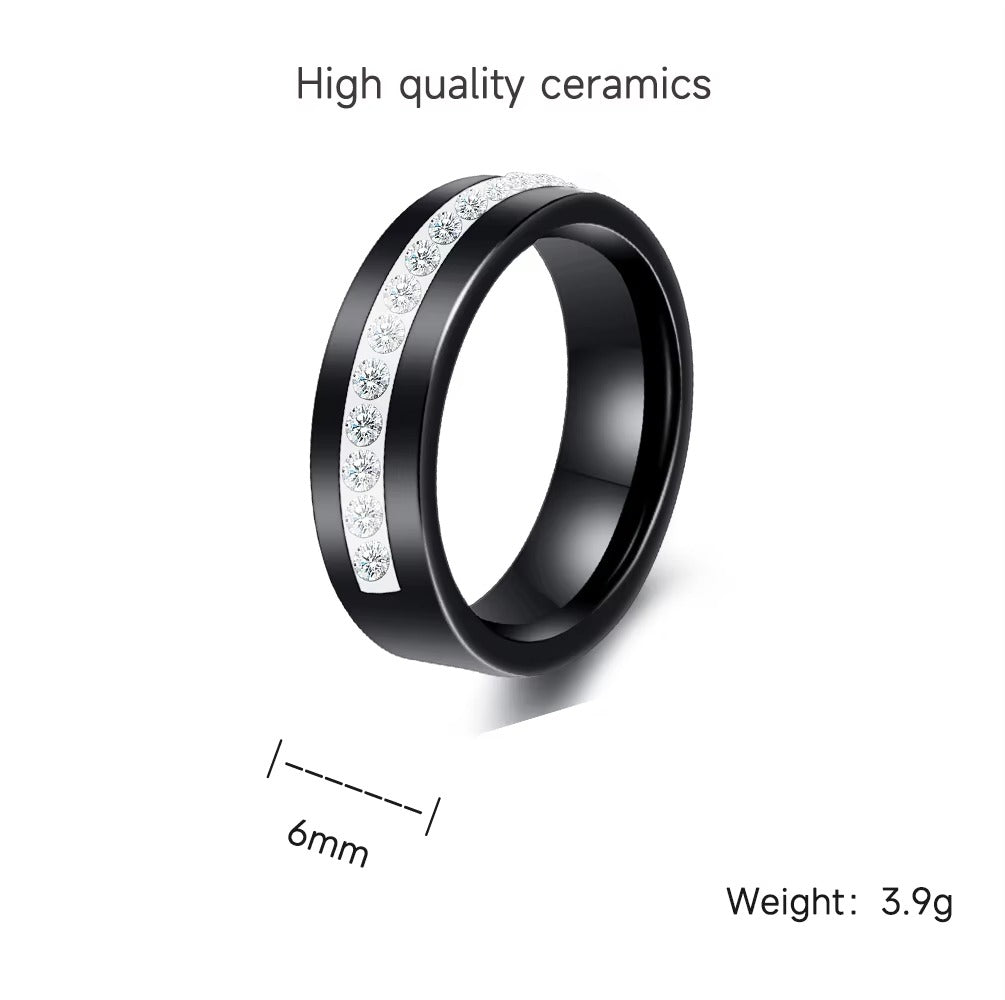 Add a touch of elegance and sophistication to your collection with this 6mm luxury ceramic ring. Available in black, white, and blue, this ring features a single row diamond inlay that sparkles with every movement. Perfect for any occasion, whether it's a formal event or a special celebration, this ceramic ring is designed to make a statement. The smooth ceramic finish combined with the diamond accents gives it a sleek, modern feel, while offering long-lasting durability and comfort.