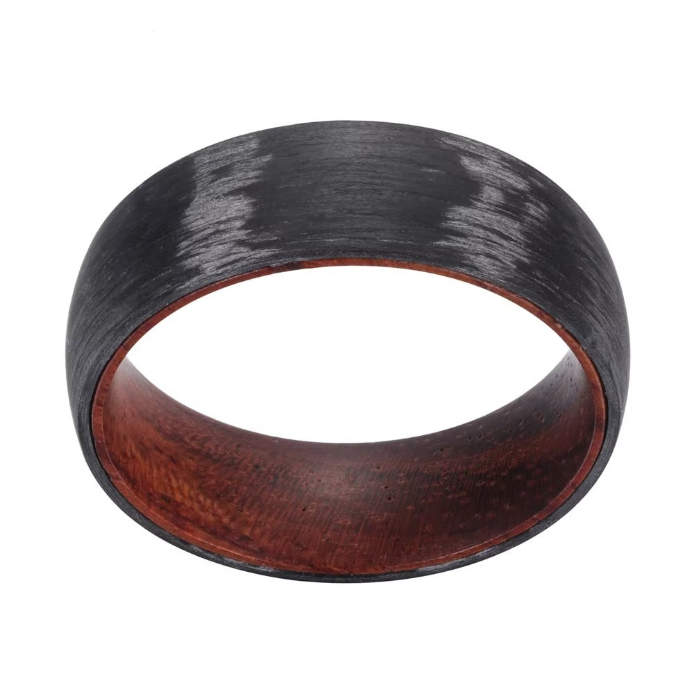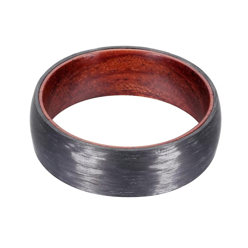8mm Dome Carbon Fiber Ring with Wood Inside — Comfort Fit