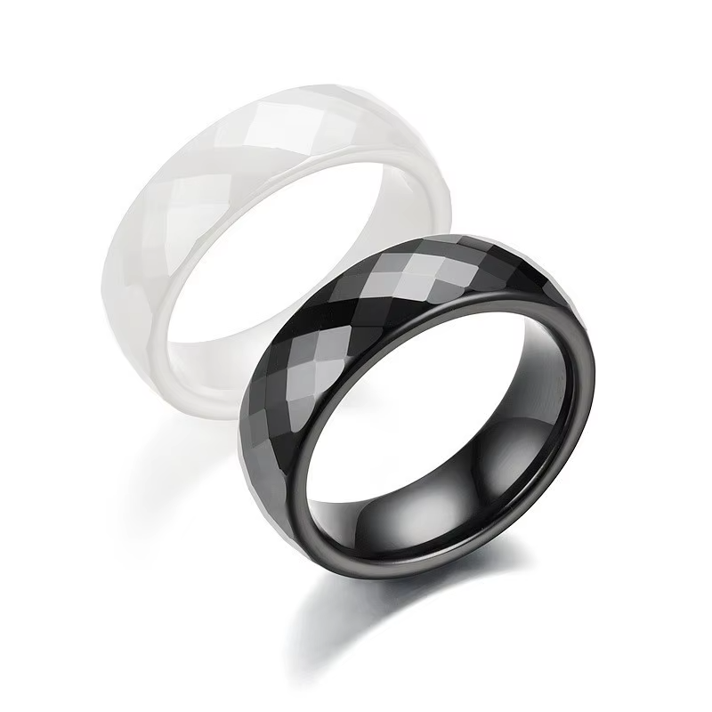 8mm Faceted Ceramic Ring Unisex Band