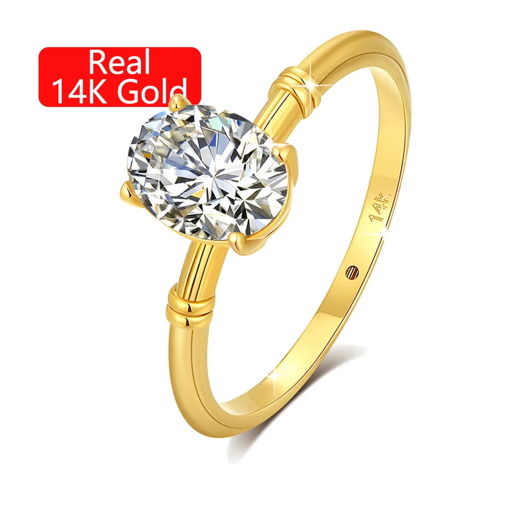 1.5 Carat Oval Moissanite Engagement Ring in Real 14K Yellow Gold