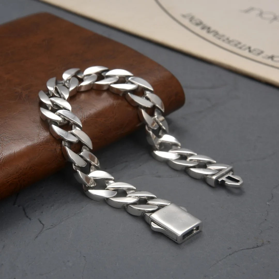 Handmade Thick Cuban Link Bracelet Sterling Silver