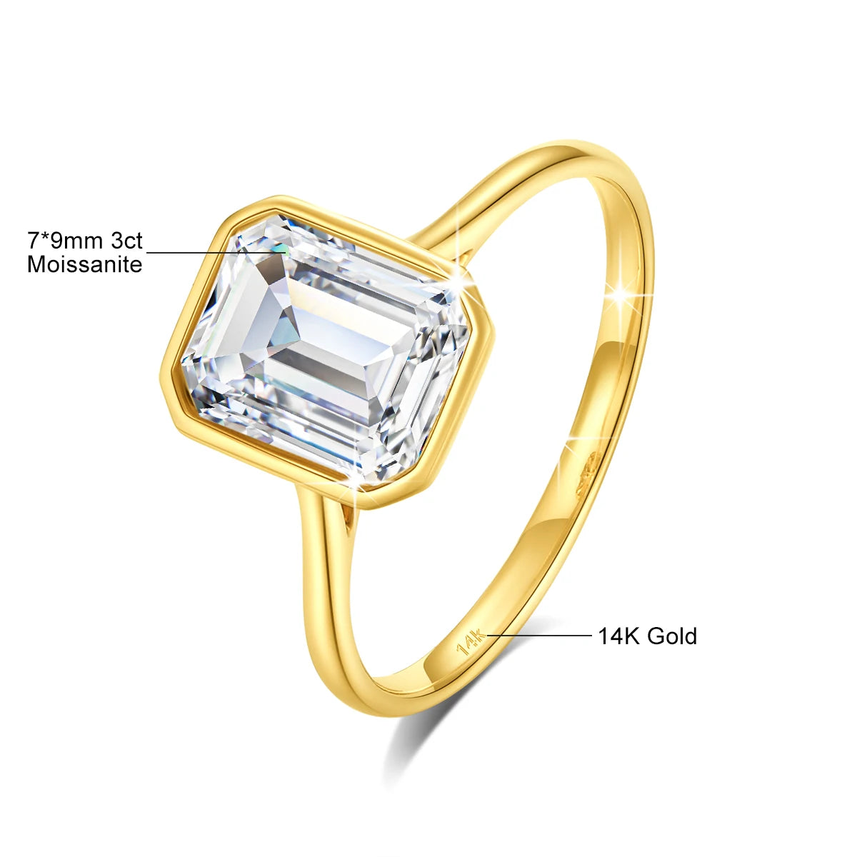 14K Gold 3 Carat Emerald Cut Moissanite diamond Ring
