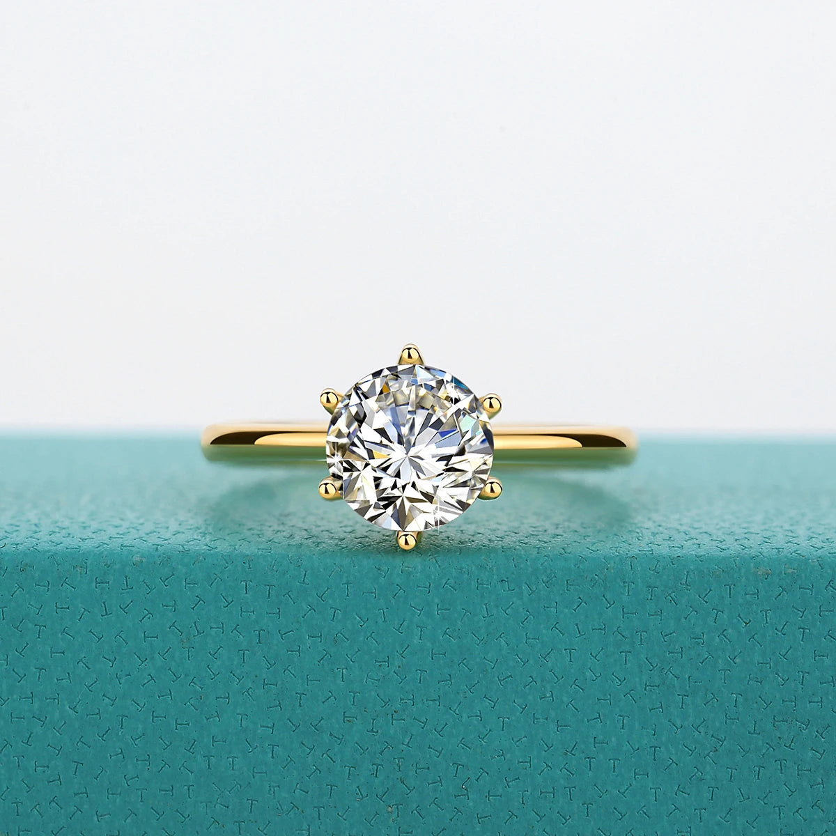 1–3 Carat Moissanite Engagement Rings – elegant and ethically brilliant. Set in timeless 14K solid gold, each ring features a round moissanite stone with VVS1 clarity and D–F color, available in sizes from 1 to 3 carats.