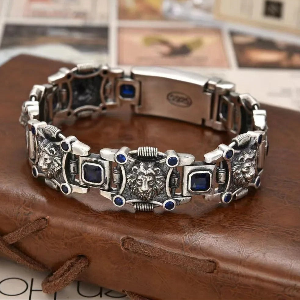 Premuim Handmade Arabic Lion Blue Zircon Bracelet Sterling