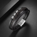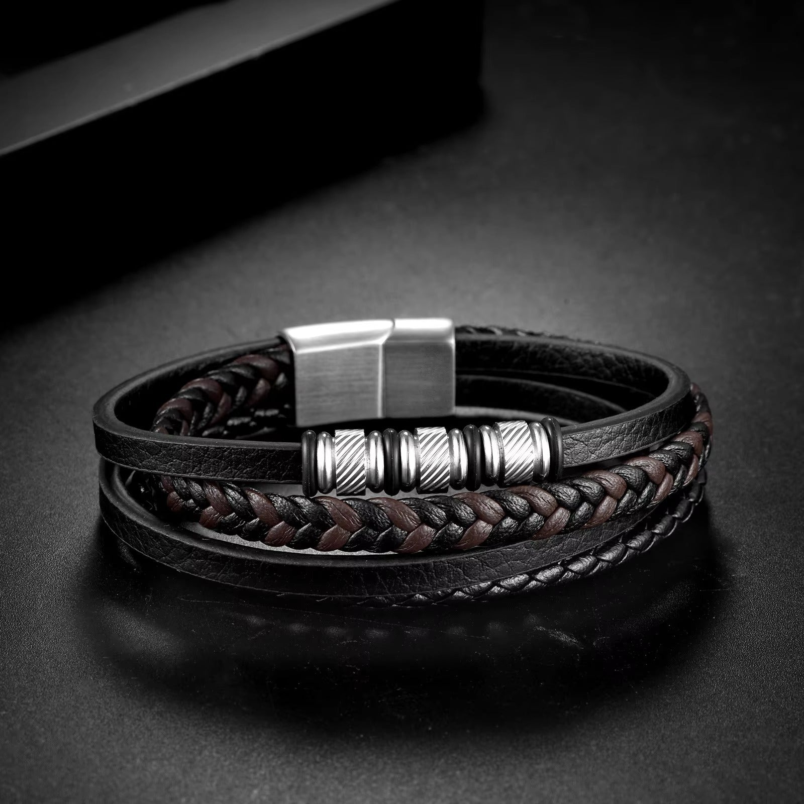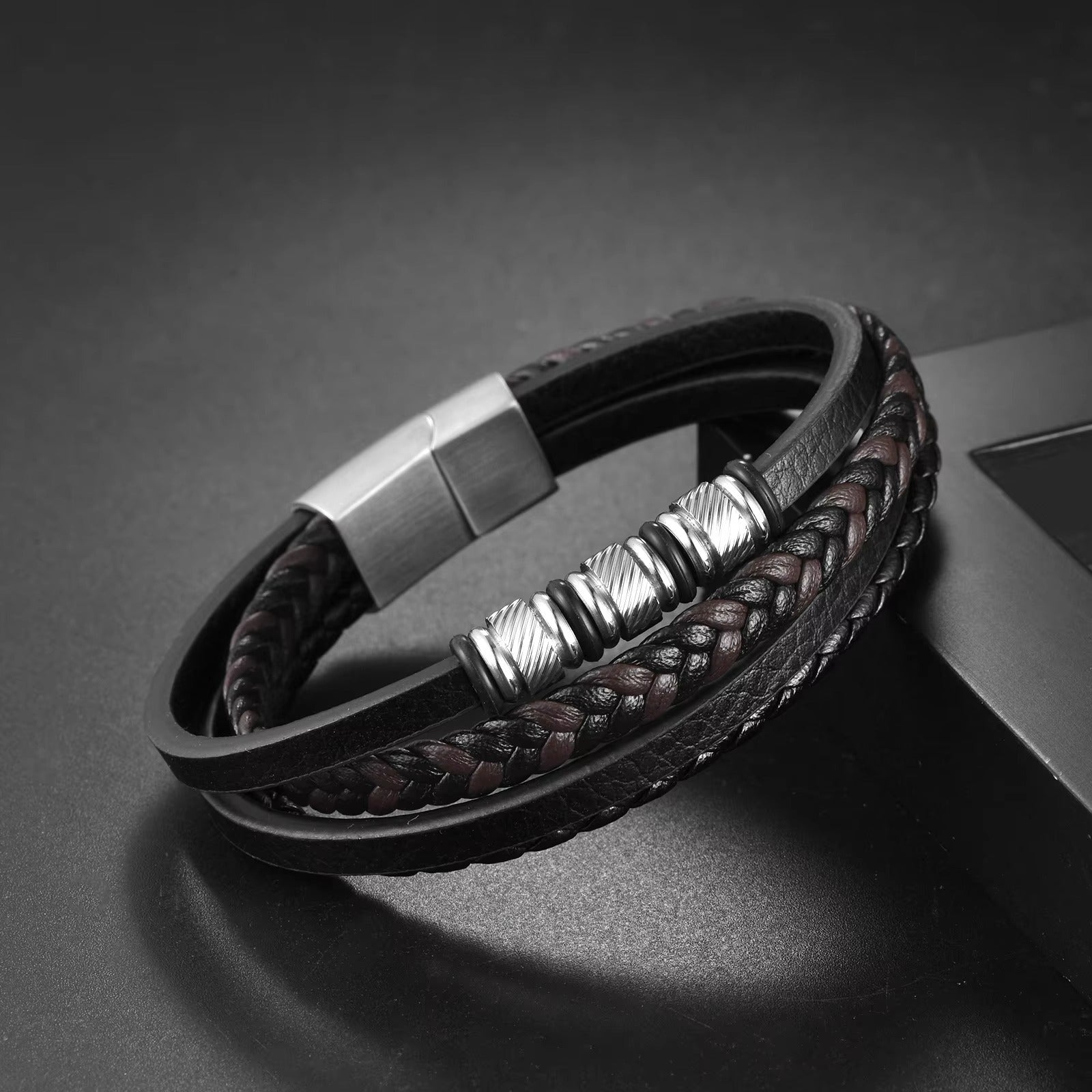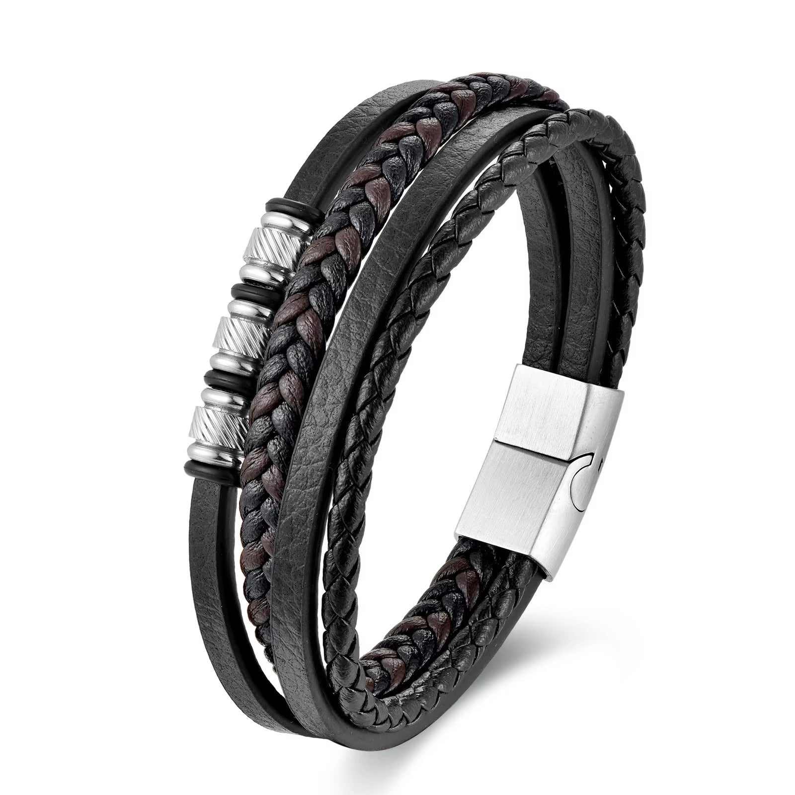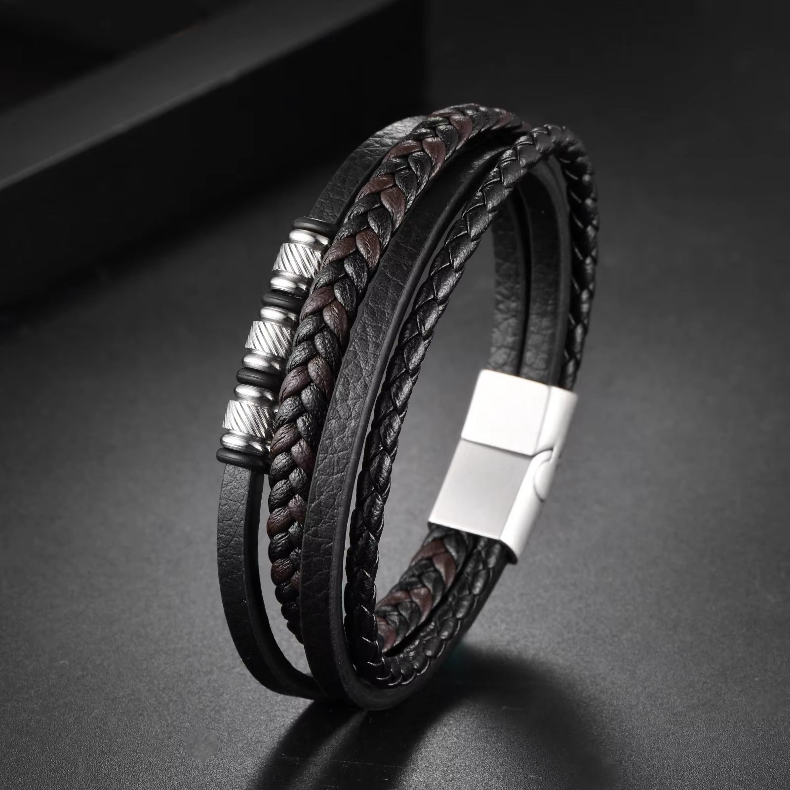 Men’s Multi Layer Leather Bracelet with Steel Clasp